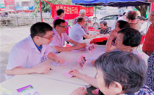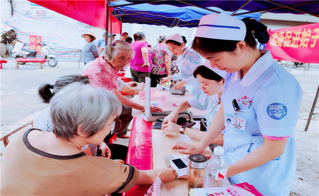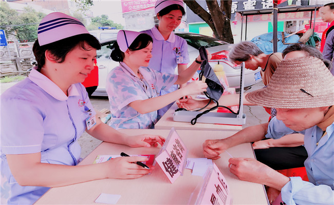 活动中张超金副主任、李良勇副主任医师及何乃新主治医师为群众免费义诊、体格检查,耐心解答群众的咨询,护士们则为群众进行免费测量血压、发放健康知识宣教手册。