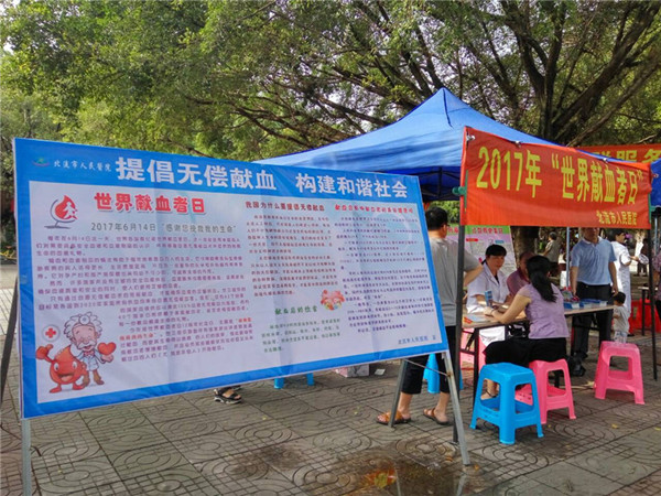 6月14日是“世界献血者日”,为做好全市“世界献血者日”宣传活动,进一步提高市民群众无偿献血的积极性,营造浓厚的无偿献血氛围,缓解临床用血荒难题。6月14日早上,我院输血科、预防保健科、外联部、宣传科等多部门联合在南园公园广场设点开展“世界献血者日”宣传活动。
