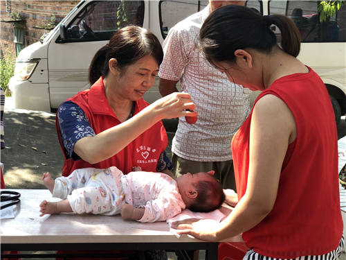 儿科一区主任廖宁为小儿做营养发育评估