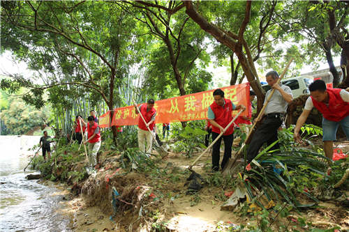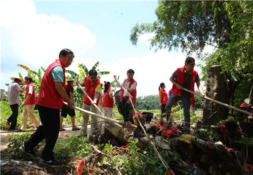 6月28日上午,北流市人民医院创建全国文明城市志愿者在凌政院长、李才书记等党政领导的带领下一行20余人到清湾镇双龙村、禾界村参加水环境治理行动。