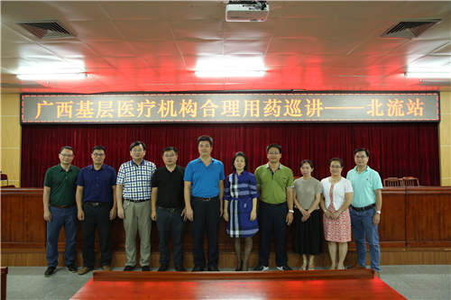 2018年6月22日《广西基层医疗机构合理用药培训巡讲会(北流站)》在北流市人民医院内科楼十三楼大会议室隆重举行。开幕式由玉林市医院药事管理质控中心主任、玉林市第一人民医院药学部主任彭评志主任药师主持,广西医院药事管理质控中心主任、广西壮族自治区人民医院药学部主任陈英主任药师,北流市卫计局党组副书记、副局长覃德军到会并作出重要指示,北流市人民医院副院长苏福锦致欢迎词,玉林市医院药师管理质控中心四位副主任一同出席了开幕式。