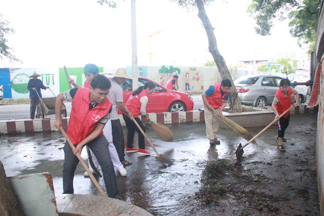 在党办的统一部署安排下,院党委书记李才、常务副院长吴显儒、副院长苏福锦、蒋靖生,党办主任谢飞等带领志愿者们分组行动,通过对被狂风暴雨肆虐过的医院道路进行积水疏通、清扫枯枝落叶、扶正倒斜树木和宣传专栏牌、修复受损设施等,确保医院环境卫生的整洁,为群众患者提供一个良好的就医环境。
