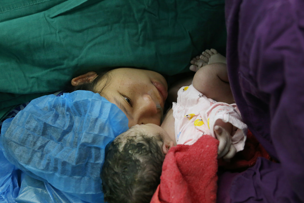 红扑扑、肉嘟嘟的小家伙果然争气,一出生就有6斤8两重,完全符合医生的产前检测结果。略显疲惫的宝妈说,面对第一次生产,挺紧张的,但看到安详的睡着的猪宝宝,生产所带来的阵痛瞬间就被幸福和喜悦所代替。
