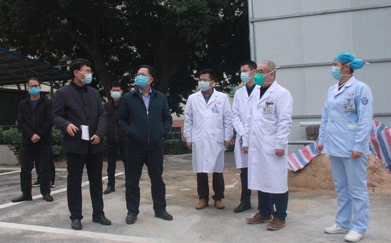 1月26日农历正月初二,李岗市长来到北流市人民医院检查指导新型冠状病毒感染的肺炎疫情防控工作。