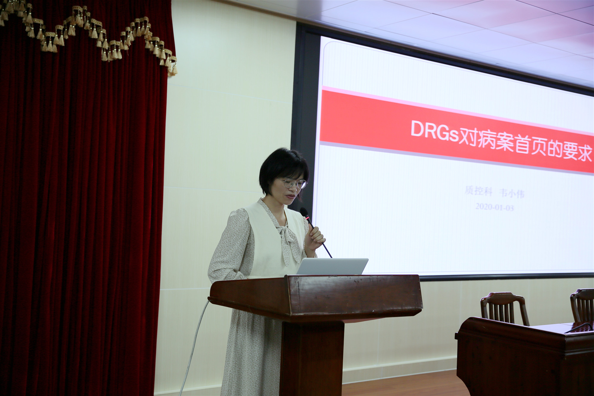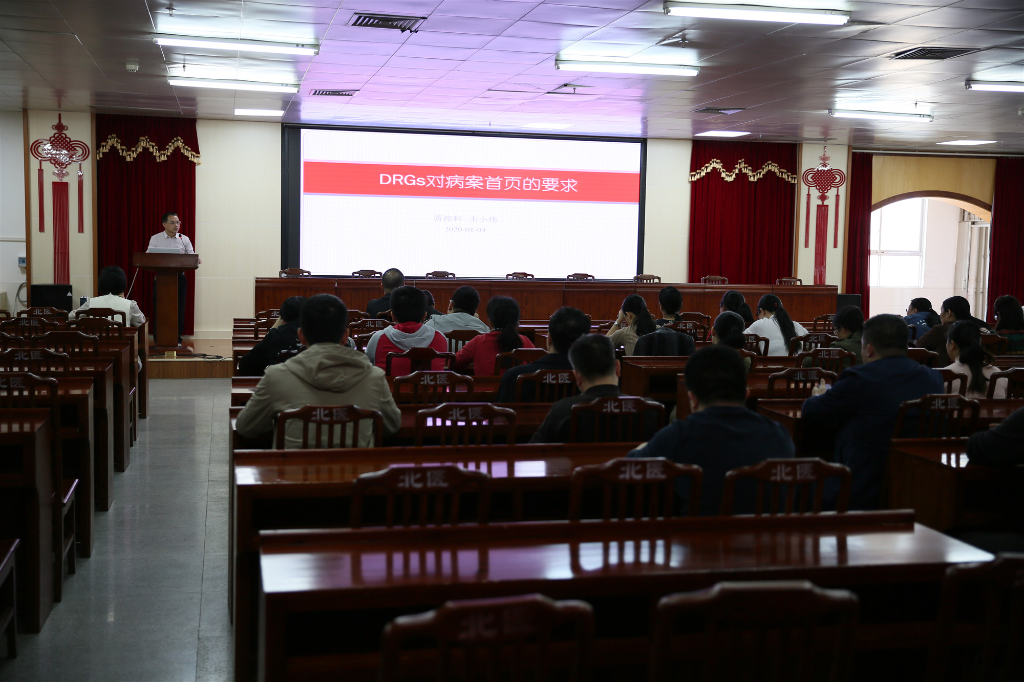 为提高医务人员对DRGs的认识水平,进一步加强临床病案首页填写规范,1月3日下午,我院在内科楼十三楼会议室开展DRGs对病案首页的要求专项培训,副院长蒋靖生、医务部部长植华德、全院临床科室医生、医疗保险办公室医审人员、信息科编码人员共100余人参加了培训,会议由副院长蒋靖生主持。