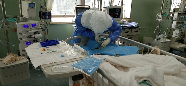 决战ICU:全力救治新冠肺炎重症、危重症患者,来自北流市人民医院援鄂医疗队员莫剑医生第一天工作现场曝光:为重症患者进行"气管镜吸痰”,这种操作医生的脸不得不正对病人口鼻,暴露风险非常高,但他们凭借过硬技术,从容操作。