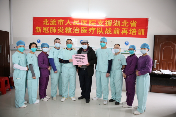 ▲2月20日下午,为助力北流市人民医院援助湖北省抗击新冠肺炎医疗救治队员一往无前的英勇义举,北流市见义勇为慈善基金会向每个队员捐赠现金2000元,基金会理事长田振华、监理长龙堂智向医疗队队员发放现金,并每人赠送价值295元的果篮一个。