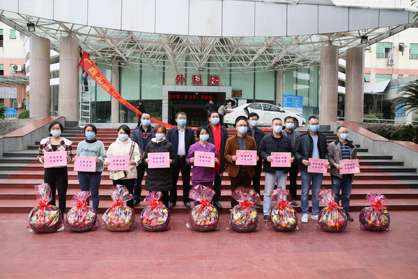 ▲2月22日上午,广西三环企业集团股份有限公司集团党委书记、副总裁陈林,集团党委副书记、工会主席、行政总监郑翔宇代表公司捐赠抗疫物资一批,价值30000元,并向我院援鄂医疗队家属表示慰问,送上慰问金每人1000元,慰问品(高档餐具)9套,合计价值13212元。