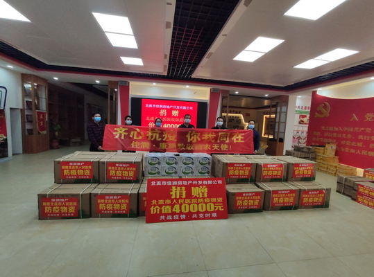 ▲2月21日下午,北流市佳润房地产开发有限公司捐赠抗疫物品一批,价值40000元。