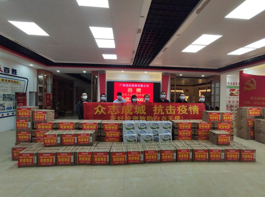 ▲2月21日下午,广西花好投资有限公司捐赠抗疫物资一批,价值25000元。