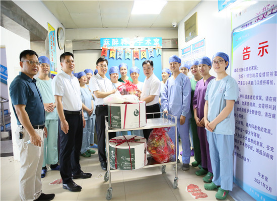 12日上午,在北流市卫健局覃德军局长、医院党委书记李才、党委副书记吴雪梅的带队下,分两组代表医院深入医院护理单元分别对麻醉手术室、神经外科、重症医学科、骨科一区、急诊医学科、呼吸与危重症医学科、心血管内科、发热门诊、儿科二区进行了慰问,向一线的护理工作者送上节日的问候和祝福。