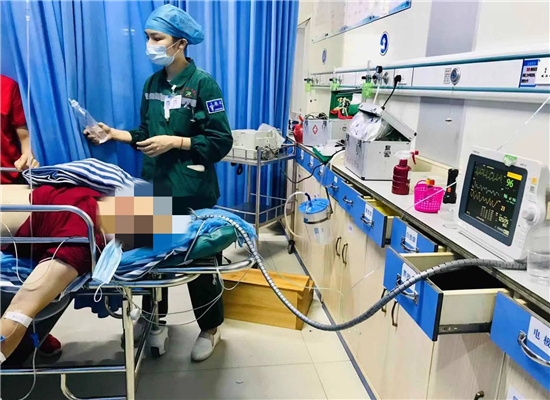 当日20时22分,我院急诊医学科收治了一名50岁的心梗患者李某。该患者为另一住院患者家属,在缴纳住院费时电话和家人发生口角,情绪过度激动倒地不起不省人事。我院保卫科保安见状,立即联系急诊科。