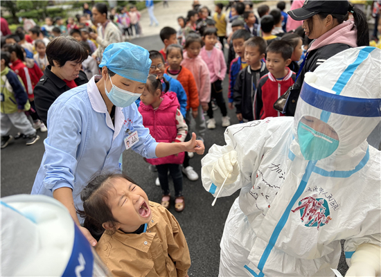 下午14:20,我院派出的18名医护人员和10名后勤工作人员在苏福锦副院长的带队下来到永丰小学。在核酸筛查主动监测工作现场,共设置了6个采样小组,负责该学校一年级和二年级学生的核酸采样工作。