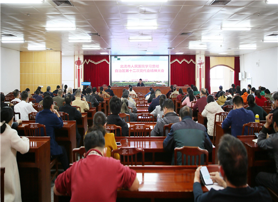12月14日下午,北流市人民医院召开学习宣传贯彻广西壮族自治区第十二次代表大会精神大会。会议由自治区党代表何永红同志传达自治区第二次党代会精神,医院中层领导及各党支部委员参加会议。