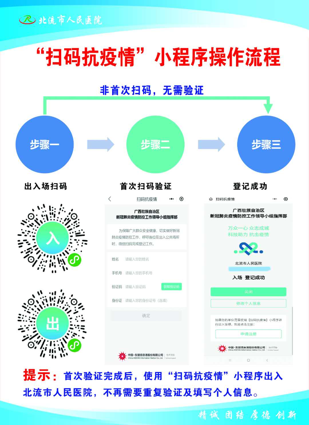 北流市人民医院关于开展扫码验证出入医院的公告