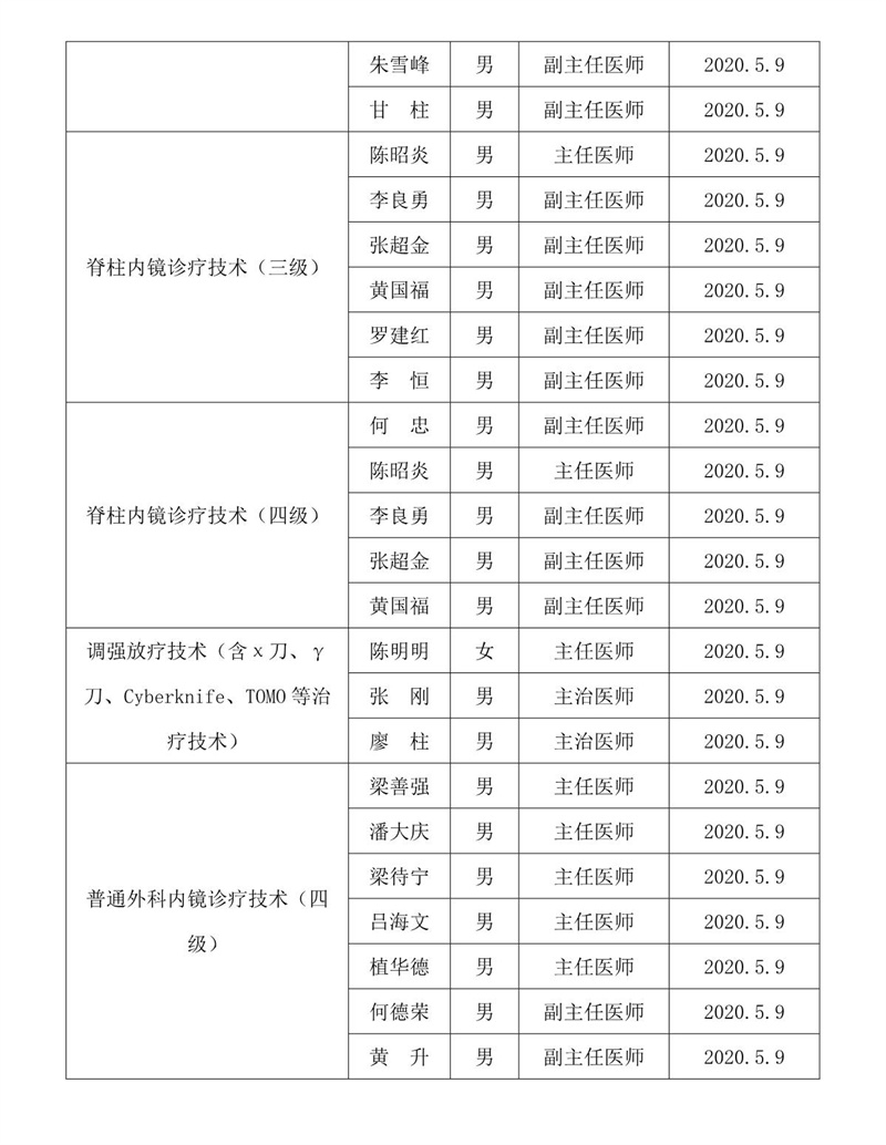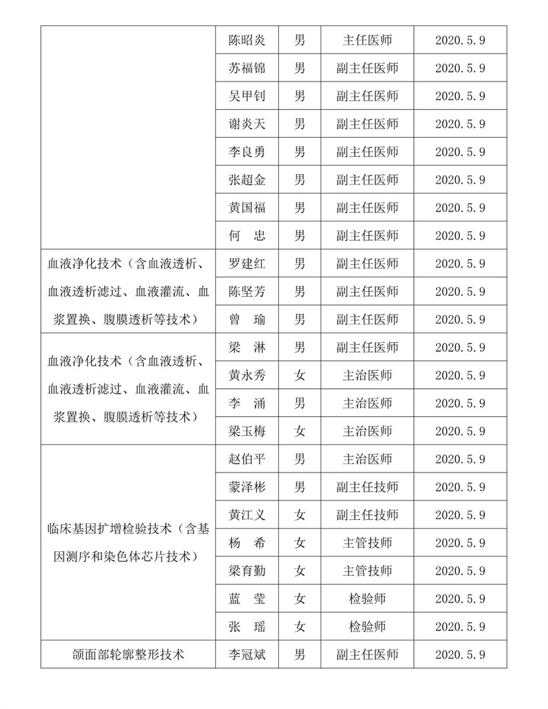 北流市人民医院具备相应限制类医疗技术资质人员名单