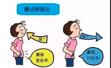 腹式呼吸锻炼:患者取立位或坐位,放松做深呼吸,吸气时尽力挺腹,呼气时腹部内陷,尽量将气呼出,一般吸气2秒,呼气4-6秒。用鼻吸气,用口呼气,要求缓呼深吸,每分钟呼吸速度保持在7-8次左右,开始每日2次,每次10-15分钟。