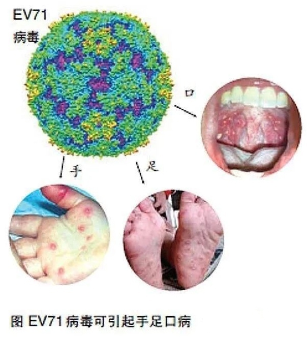 多发生于5岁以下儿童,表现口痛、厌食、低热、手、足、口腔等部位出现小疱疹或小溃疡,多数患儿一周左右自愈,少数患儿可引起心肌炎、肺水肿、无菌性脑膜脑炎等并发症。个别重症患儿病情发展快,导致死亡。目前缺乏有效治疗药物主要对症治疗。